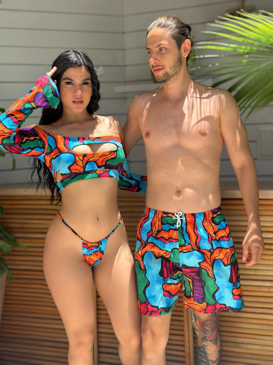 Combo trajes de baño para pareja, contiene traje de baño para mujer y pantaloneta de hombres.