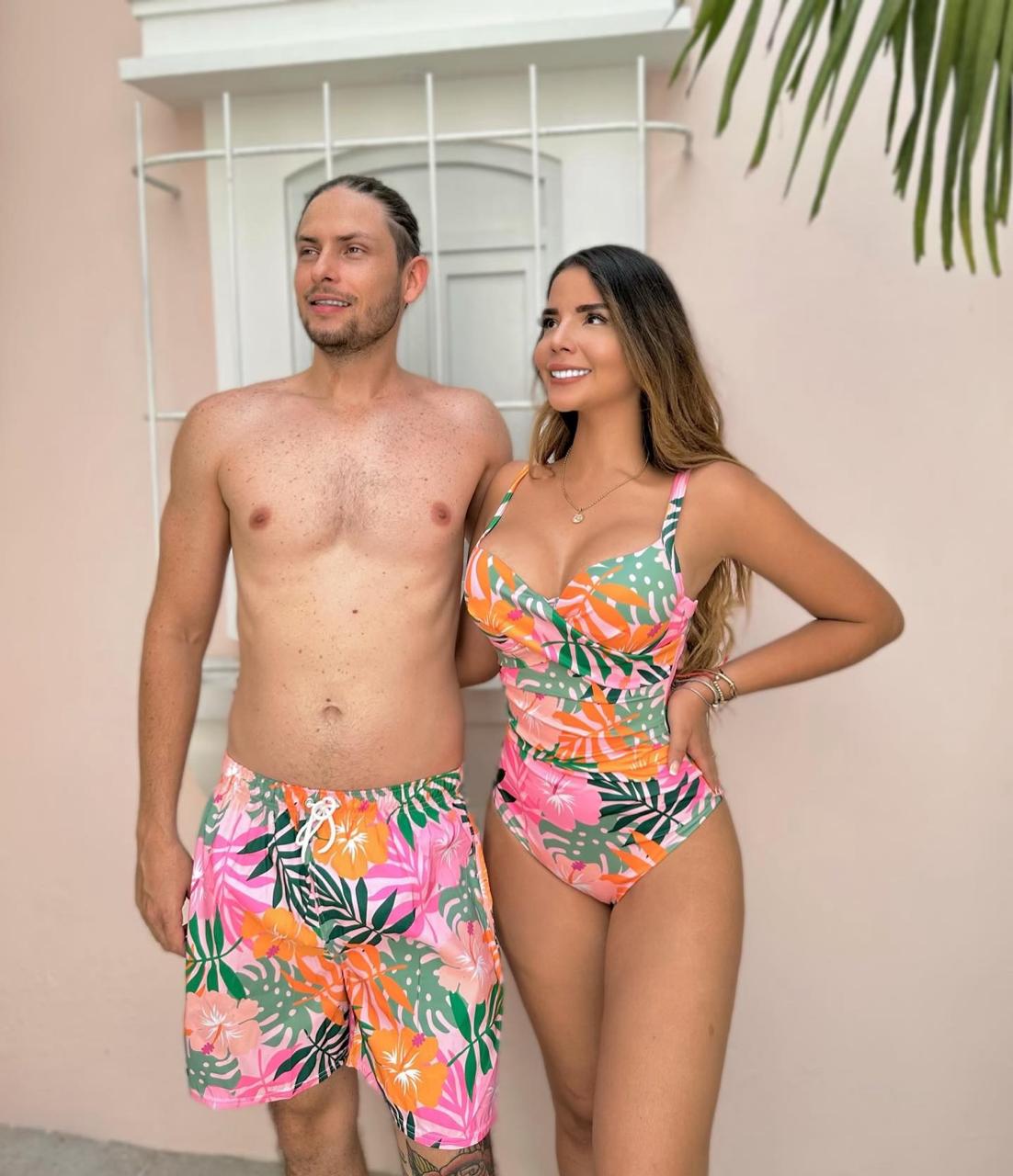 Combo trajes de baño para pareja, contiene traje de baño para mujer y pantaloneta de hombres.