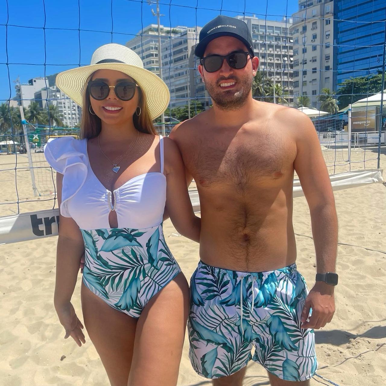 Combo trajes de baño para pareja, contiene traje de baño para mujer y pantaloneta de hombres.