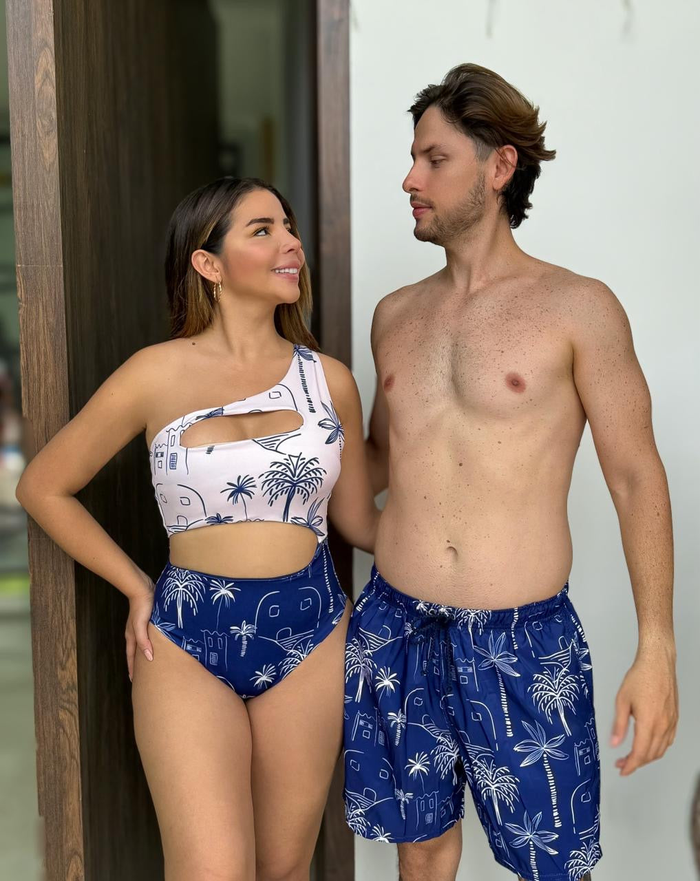 Combo trajes de baño para pareja, contiene traje de baño para mujer y pantaloneta de hombres.