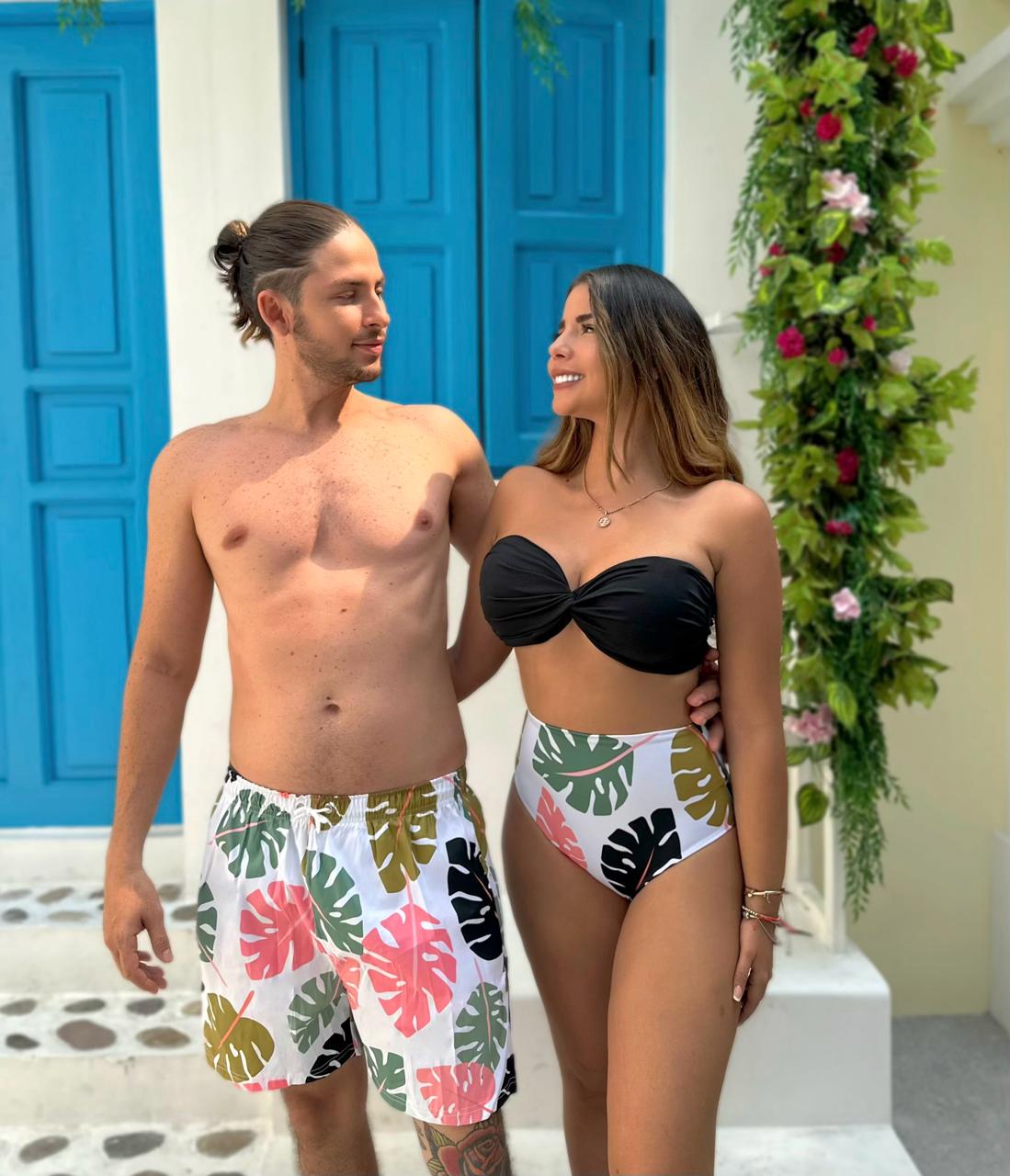 Combo trajes de baño para pareja, contiene traje de baño para mujer y pantaloneta de hombres.