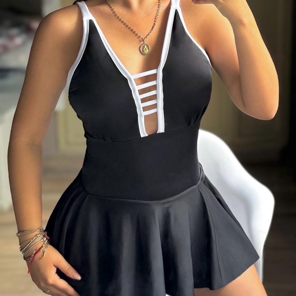 Vestido de baño enterizo, este diseño realza tus curvas y se acentúa en tu cintura, además por su color negro nos hace ver mas delgadas.